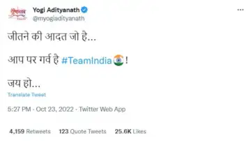 उत्तर प्रदेश के मुख्यमंत्री योगी आदित्यनाथ ने भारतीय क्रिकेट टीम को जीत की बधाई दी.