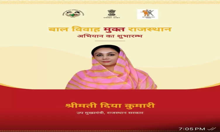 Jaipur: राज्य में बाल विवाह जैसी सामाजिक बुराई को खत्म करने के लिए राजस्थान सरकार द्वारा चलाए जा रहे प्रयासों के तहत उपमुख्यमंत्री दिया कुमारी ने ‘बाल विवाह मुक्त राजस्थान’ अभियान की शुरुआत की है।